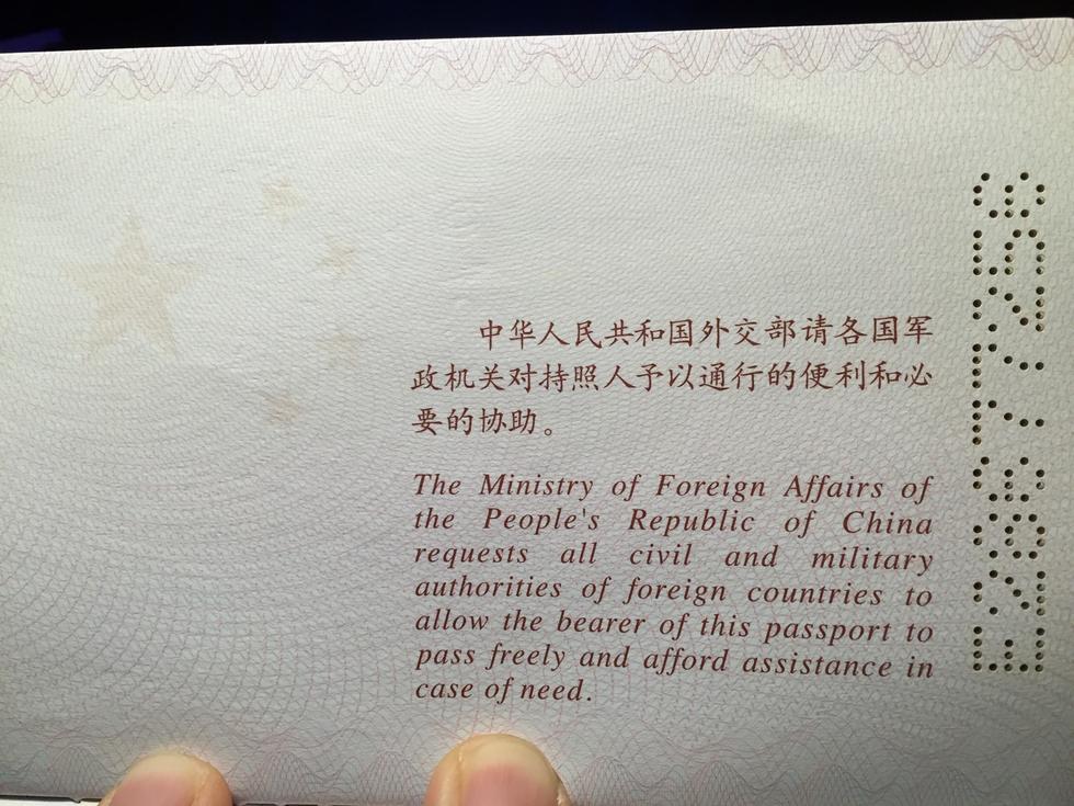 [p=23, null, center] [p=25, null, left]未被照射的中國護(hù)照。